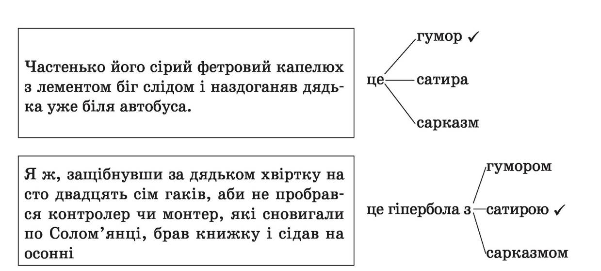 — Визначте засоби комічного, художні засоби.