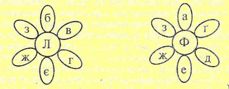 Учні отримують картки -» пелюстки», на яких написані визначення, що стосуються фольклору чи літератури або обох цих видів словесного мистецтва. Вони повинні скласти із цих «пелюсток» дві «квітки» : одну — з буквою «Л» у центрі (література), другу — з буквою «Ф» (фольклор).