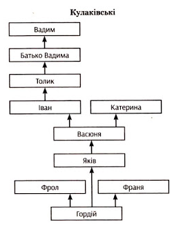 (Учитель роздає учням імена героїв Кулаківських, школярі на дошці відтворюють генеологічне дерево)