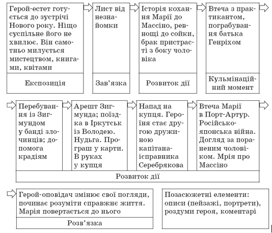 6) спостерігаємо боротьбу героїні за виживання, вона весь час потрапляє в небезпеку — емоційність і драматизм розвитку дії (неоромантизм);