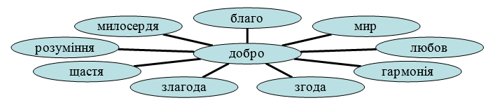 - З якими словами у вас асоціюється слово «добро»?