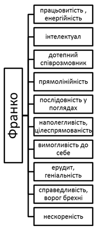2. Складіть асоціативний кущ: з якими рисами характеру у вас асоціюється постать І. Франка, намалюйте його «психологічний портрет».
