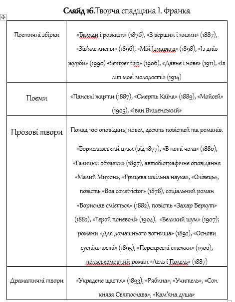 3. Творча спадщина Івана Франка (Слайд 16):
