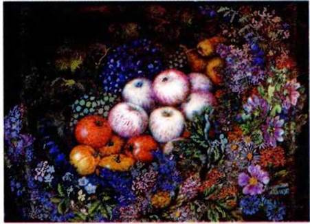 1. Що називається словесним малюнком? Наведіть приклади. 2. Які мовні засоби беруть участь у творенні словесних малюнків? 3. Які звукові асоціації викликають звуки? 4. Як змальовані дари природи на картині К.Білокур, уміщеній на с. 65? Які художні деталі на картині ви б відзначили?