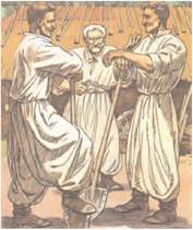Мир між братами поміцнішав ще більше задля господарської справи, задля спільної вигоди... Карпо спрягався з Лавріном, і вони вдвох в супрязі орали попереду Карпове поле, а потім Лаврінове. Карпо ходив за плугом, а Лаврін був за погонича. Спільна вигода присилувала їх помагати один одному в оранці й у сівбі, і в заволікуванні, і в возовиці».